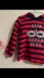 Striped long sleeve toddler hoodie in navy and red with an adorable embroidered “Born a Superhero” graphic and soft mask applique. Lightweight and comfy for year-round play. In good condition with typical wash wear and minor pilling.