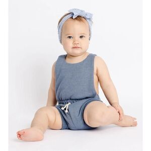 The romper shortie! ....soft, stretchy, and designed for playing the lazy sunny days away. With elastic at waist, a faux drawstring, adjustable straps that cross and secure in the back with buttons, and small logo seam tag, these are a modern + comfy take on the classic romper. Perfect for showing off squeezy babies -- both boys & girls!