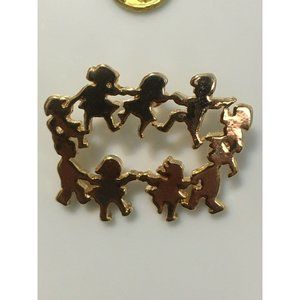 Children Holding Hands Playing Ring Around Rosey Gold Toned CTPM Collectible Pin.