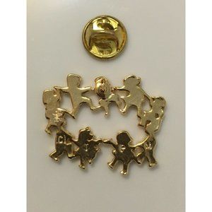 Children Holding Hands Playing Ring Around Rosey Gold Toned CTPM Collectible Pin
