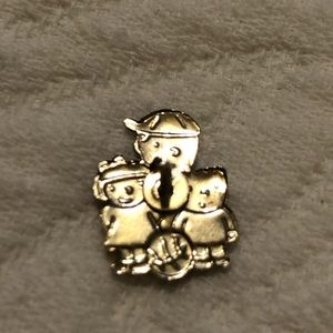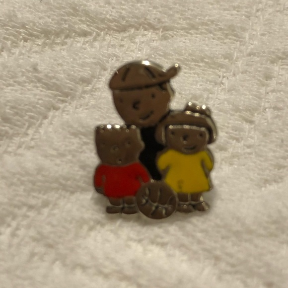 Three children pin ideal for teachers to wear to parents conference. Boy girl boy