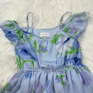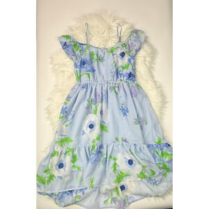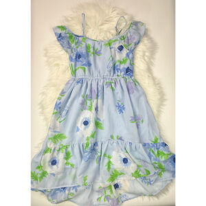 Children Place Girls Medium 7/8 Blue Floral Ruffle Tiered Spring Summer Sundress