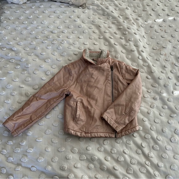 Super cute rose gold/metallic Sherpa-lined faux leather jacket. Size 4. Good condition. Smoke free and pet free home.