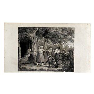 Children Playing On Farm Steel Engraving 1859 Victorian Blindfolded Art DWY5F