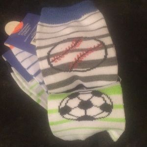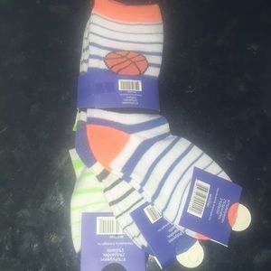Great stocking stuffer. 3 pair of Children sport socks for toddlers-preschool shoe sizes. Colors aw teen, blue and orange striped socks