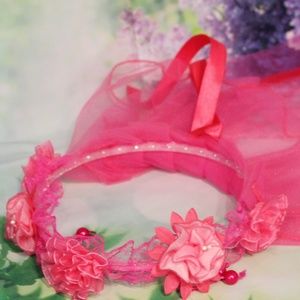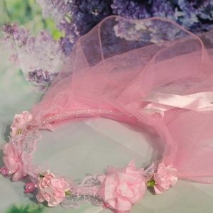 Attached to the wreath is a long, flowy mesh veil that adds beauty to your girl's crowing glory.