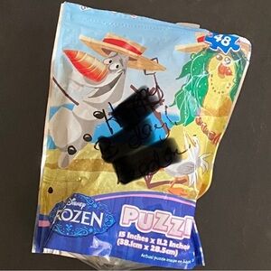 • Disney’s Frozen Puzzle, 48-Piece Puzzle on the Go with Resealable Bag. Measures: 15”x11.2”. BRAND NEW— In original packaging.