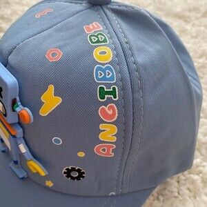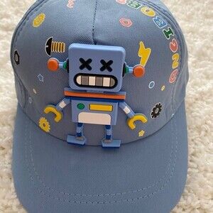 Children's Ball Cap. Blue. One Size. Robot Design. Adjustable Velcro. Kidcore.