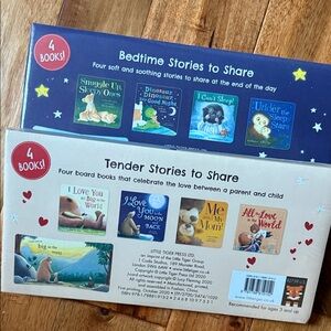 Set of eight children's bedtime story books. Includes titles like 'Snuggle Up, Sleepy Ones' and 'I Love You to the Moon.' Perfect for bedtime reading.