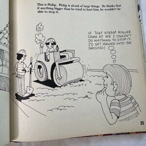 This is a vintage 1979 children's book from the Joy Wilt Ready Set Grow Series titled "Handling Fear in Dangerous Things and Situations". It provides kids with guidance on how to cope with and overcome fear, in an engaging and age-appropriate format.