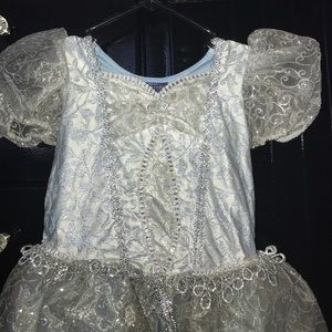 This is a size small(6/6X) in children's size. This is a beautiful cinderella dress. Only thing wrong with it is there there is a tear in the overlay as show in picture, would be easy to fix and it is not very noticeable because it is located where the dress naturally ruffles a bit in the middle.