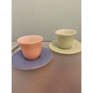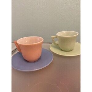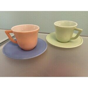 Antique Hazel Atlas Moderntone 1950s Little Hostess 4 Pc Glass Tea Set. 2 saucers and 2 teacups.