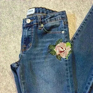 These are unique and super cute with the embroidery detail. They are a straight leg with a but of a skinny fit. The size tag has been removed so please refer to the pics for measurements.