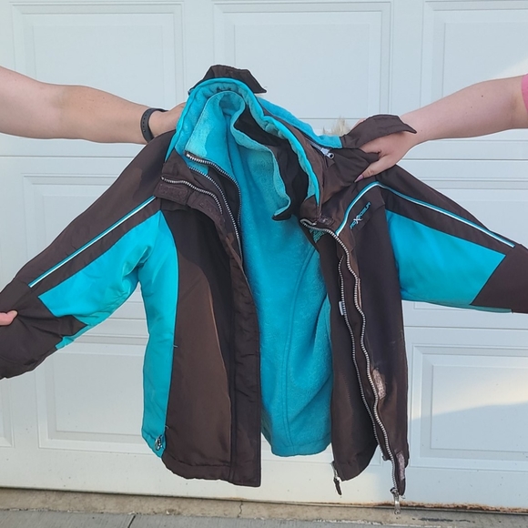 4 in 1 teal and brown girls reversible jacket. There is 2 jackets that come with this. Winter or spring