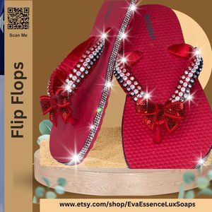 Childrens Old Navy| Red White Blue Crystal Flip Flops/Sandals Sz 12/13| Memorial Day| 4th Of July|