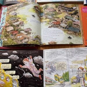 A colorful collection of children's picture books. Includes titles like 'The Cat in the Hat' and 'My Amazing Mom'. Perfect for young readers.