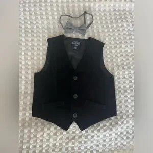 Stylish black vest with matching bow tie. Perfect for formal occasions.