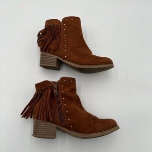 Children’s Place Brown Camel Color Zip-On Studs Fringe Ankle Boots