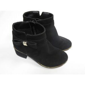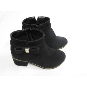 Children’s Place Faux Black Suede Dress Ankle Booties Zip Bow Heel Girls 12