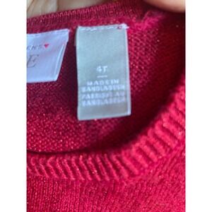 Children's Place Girls 4T Red Christmas Reindeer Sweater Dress Holiday Outfit. Festive girls' long-sleeved sweater dress, ideal for the holiday season. This red dress features an adorable reindeer design with glitter accents and embellishments, creating a joyful and eye-catching look. The comfortable sweater material makes it perfect for keeping warm during cooler weather. Great for Christmas parties, holiday pictures school events, or family gatherings.