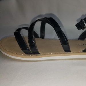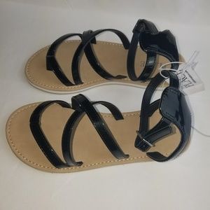 NWT- Nice And comfortable Flat Kids sandal. In between toes crisscross designs and belt buckle closure on the ankle.