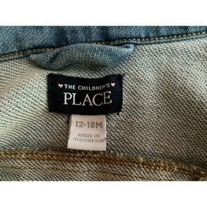 Children's Place Girls Blue Jean Jacket w/ Ruffle Trim Size 12-18 Months. Features ruffle trim on front of jacket. Made of 81% cotton/19%polyester/1%spandex and is in very good condition! No holes, tears, or stains. Please look at and zoom in on pics.