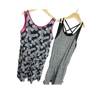 girls size xl 14-16 lot of 2 summer rompers. black pineapple print childrens. place and gray atheltic works gray stretch. both in good condition, sleevless with strappy back