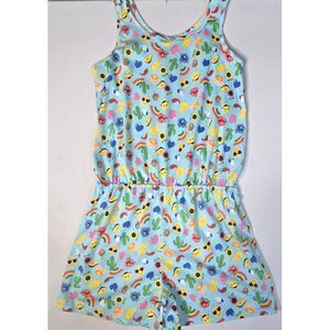 Childrens Place Girls One Piece Romper XXL/16 Blue Rainbows Smiles Emojis NWT