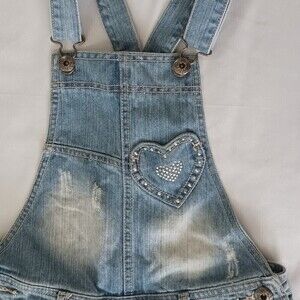 Children's Place Girls Overall Shorts With Heart Embellishment Size 14