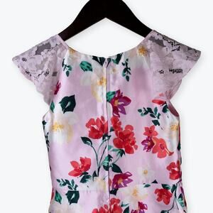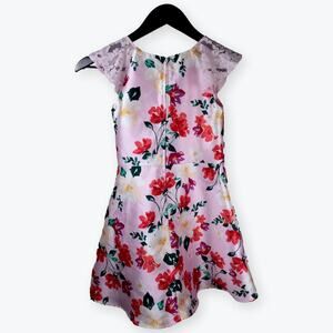 Children's Place Girls Pink Floral Sleeveless Party Dress 8 . Satin shell, lace cap sleeves/straps. Round neck, back zip. Excellent used condition. Midi length, fully lined. Fit and flare.