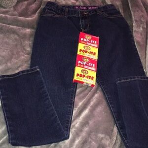 Girls size 14s Children’s Place skinny jeans. The length is 34 1/2 inches. The waist is 22 inches laying flat all the way around. The rise is 8 1/2 inches and the inseam is 27 inches.