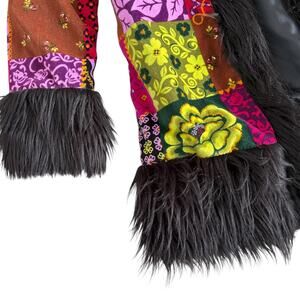 Children’s Place Penny Lane Faux Fur Trim Boho 60s Y2K Coat Patchwork Jacket 7/8