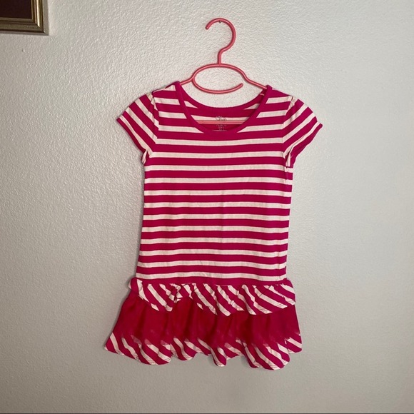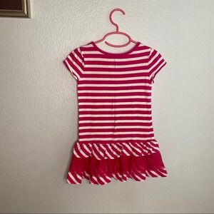 Cute Children’s Place dress w pink and white stripes. Later at bottom trim w tulle. Can be worn as dress or as long top w leggings. Size xs 4. Body is 100% cotton/ Trim 100% polyester.