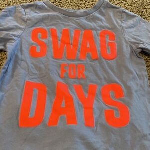 Great back to school outfit. Pants can be worn long or rolled up. Drawstring and elastic waist with pockets in the front and back. Shirt has a great Swag for Days graphic on the front. Both items in ready to wear condition. Super cute!