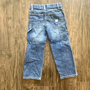 Dark blue wash straight cut Utility jeans by Children's Place in very good preowned condition. No flaws. Light signs of use.
