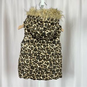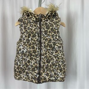 Children's Place XS Size 4 Sequin Animal Print Faux Fur Puff Vest Zipper Puffer