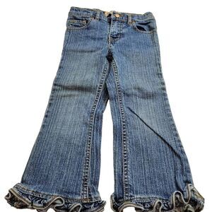 Children's Place ruffle flare jeans 4T. Discoloration on back right side. 10x22". 15" inseam. 10oz