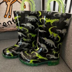 Children’s rainboots, brand new with tags never worn Wild Chiefs brand purchased in target Green Dino print, lights up