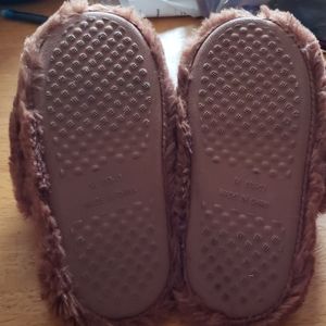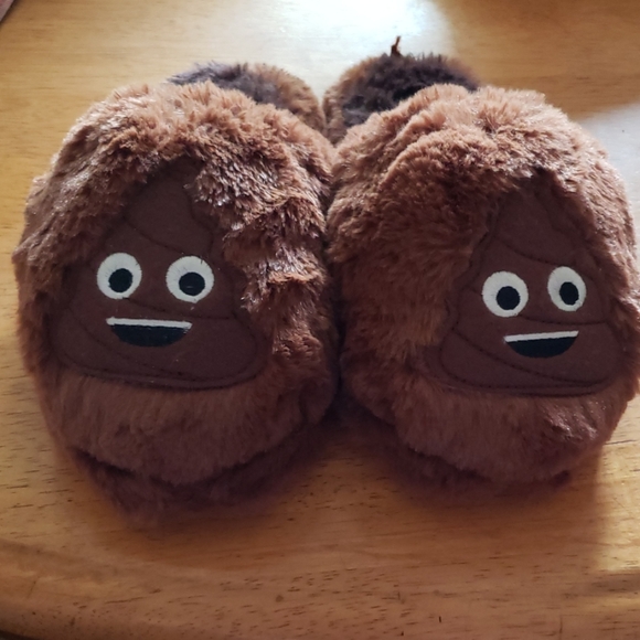 These are Brown furry poop slippers brand new never worn