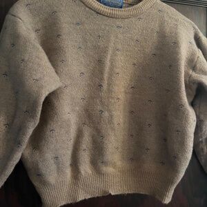 Brown crewneck sweater with red and blue detailed design. Could fit adult size 0-2