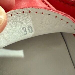 People, very, very, very cute. Wish I could keep forever but my daughter grew out of them. They are only worn about 3 times. Just like you see in the adult loafer, these are just a smaller version. Just as elegant and refined. Red leather, lots of Gommino bubbles on the bottom. Refer to picture. I have original box and dust bags for each shoe.