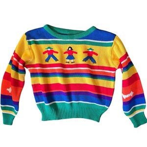 Children’s Vintage 60s Rainbow Striped Knit Crew Neck Sweater 3T