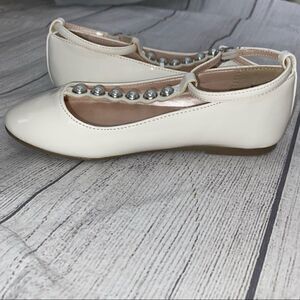 Childrens place patent leather white shoe w/middle ankle bead strap & buckle close
