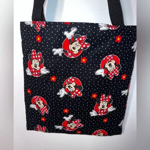 Children’s tote Minnie Mouse print, with two outer pouches and one zip pouch pocket, fully lined with sturdy synthetic handles
