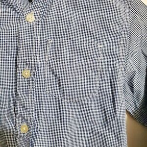 Blue and White checkered print button down shirt. Front pocket. Pre-owned in good condition. Please refer to pictures for best description and condition verification. Size 5-6.
