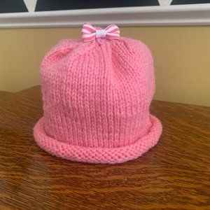 Pink with little bow accent. Hat can be rolled more to make it shorter or left as is to slouch. Depends on size of head. Brand new.