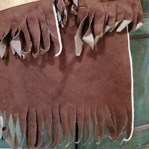 Faux Brown Suede Loin Cloth - ties around the waist. Measures 42" from one end of tie to the other. Not hemmed.