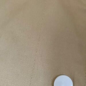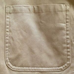 Child's trench coat with s straight line, snaps covered in white, all cotton, polyester lining, snap cuff, patch pockets, traditional collar. Beautifully made by Uncle Cotton. Like new. This coat could be worn by a girl or boy. Very cool find.