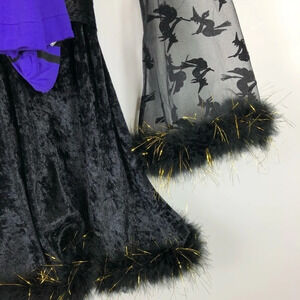 Childs Large Girls 2 Piece Black Adorable Witch Costume Dress Tights Halloween