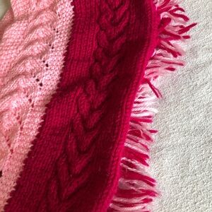 Little girl’s crochet pink pancho, about a size 6 with fringe Really cute!!